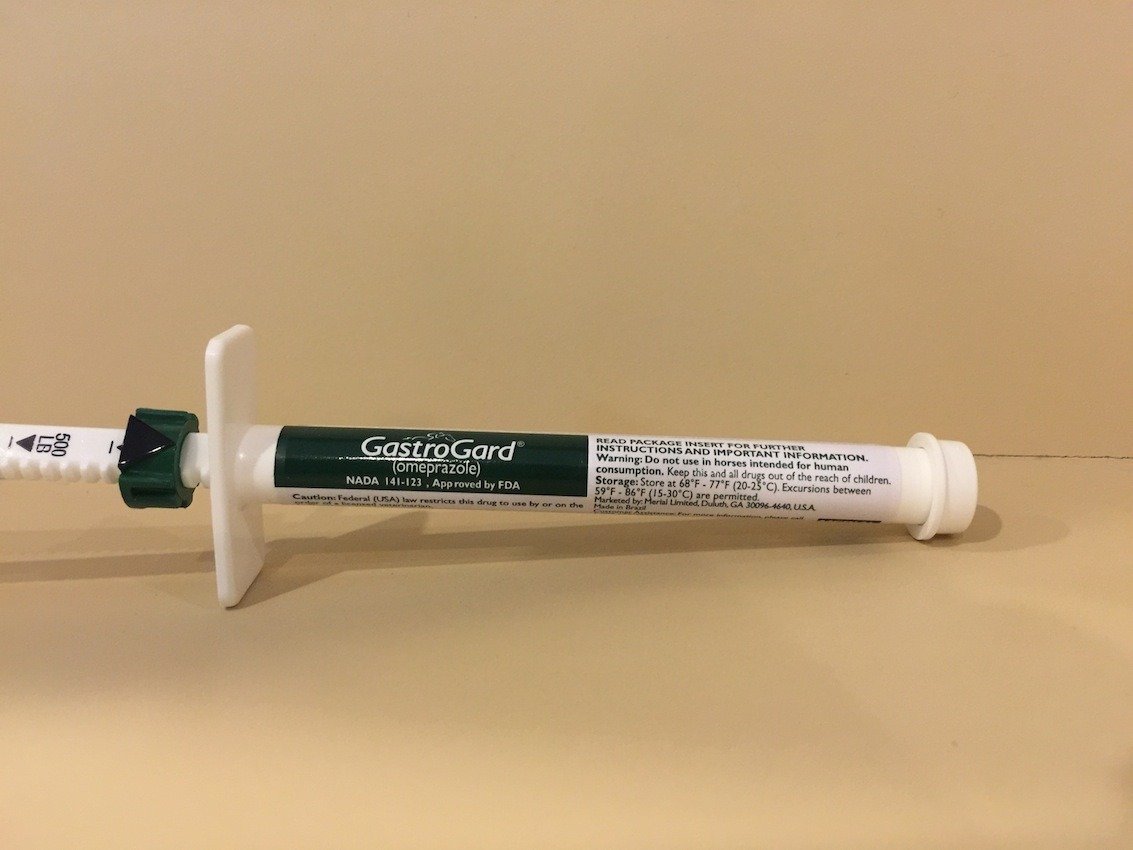 Ulcergard, on the other hand, is used to help prevent your horse from developing stomach ulcers. A horse is prone to developing stomach ulcers during times of stress which include, but are not limited to, training, competition, trailering, confinement (stalling a horse or keeping it in a small paddock), social regrouping, or weaning. When used as directed (a quarter of a tube per day), during these times of potential stress, Ulcergard helps prevent the formation of equine stomach ulcers in horses weighing 600 to 1,200 pounds. Talk with your veterinarian if you horse weighs more than 1,200 pounds to determine the appropriate preventive dose.